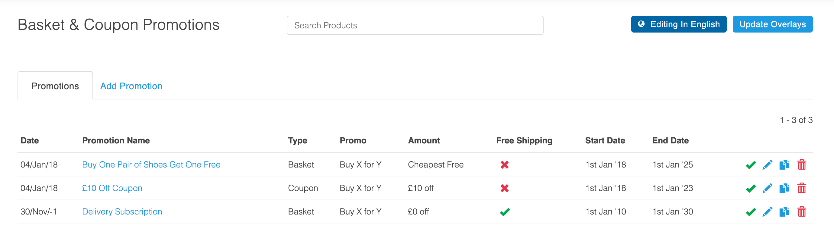 You will then be presented with a list of promotions that are already set up on your store.
