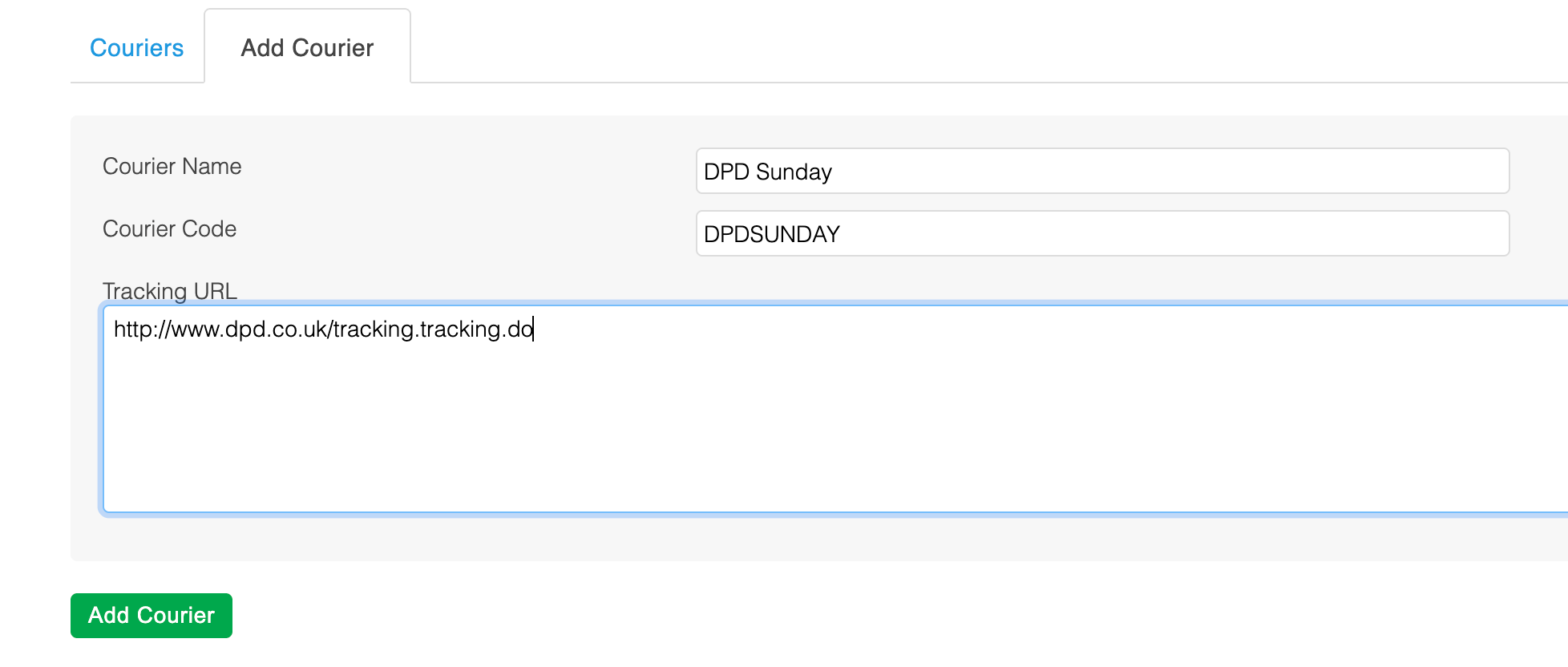 URL | Specifies the URL of the couriers tracking page. The URL can be used on your store to direct users to the relevant courier page, enabling them to track the delivery of their order. |