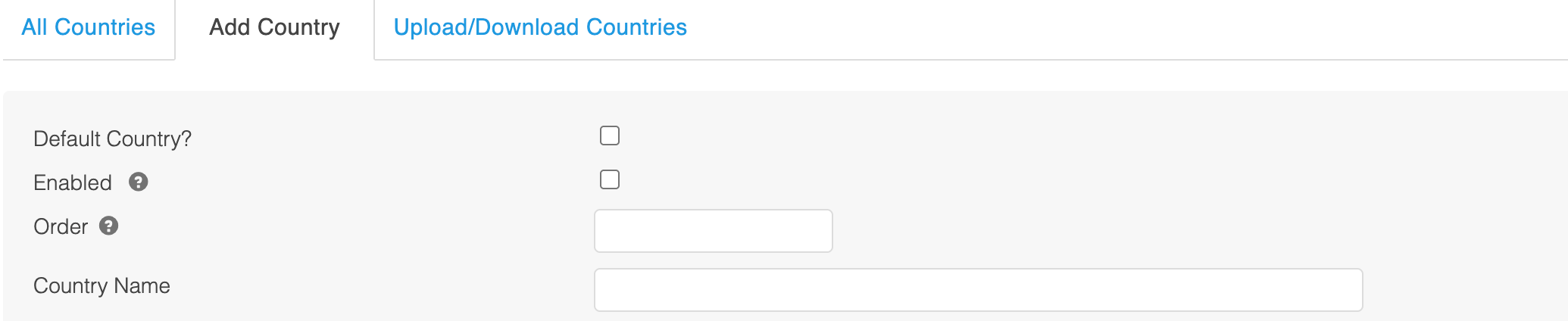 To add a new country, navigate to the Orders > Shipping > Countries > Add Country tab: