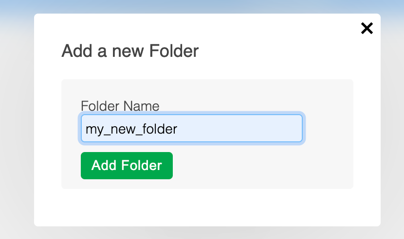 Once you have clicked the add button, you will be asked for the name of your new folder, which you should provide as shown below before clicking the "Add Sub-Folder" button to confirm the action: