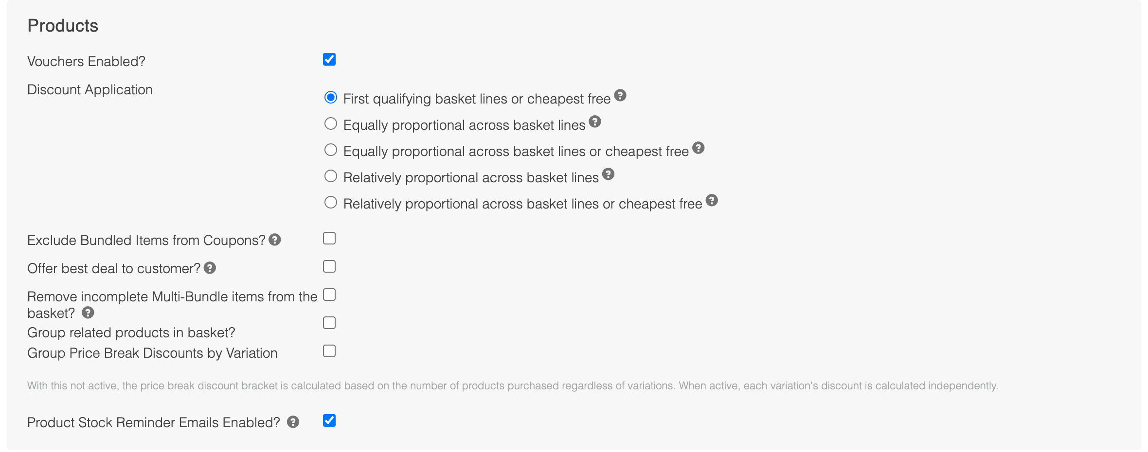 Once the templates and email have all been set-up, the system be safely be turned on using the "Product Stock Reminder Emails Enabled?" setting, as shown below in Figure 1.