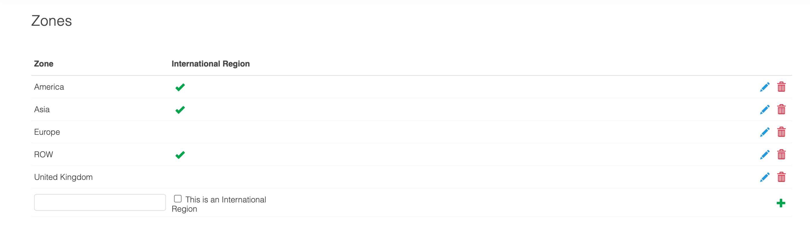 When shipping orders abroad, as opposed to charging a different rate for each individual country, your courier may charge the same price for all parcels sent to any country within a particular zone. Therefore, a zone is usually considered to be a collection of countries, for example Asia. When creating shipping zones, you may wish to check with your courier, as they may specify both the zones and the countries that reside within them.
